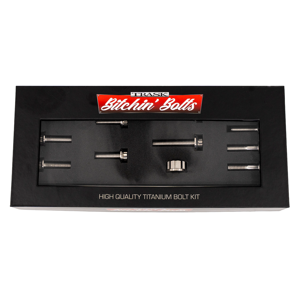 Motor mounts take the brunt of vibration and torque, and they demand serious hardware. Trask Bitchin’ Bolts replace stock with Grade 5 titanium, giving your M8 the strength and weight savings to stay tight and true under power.